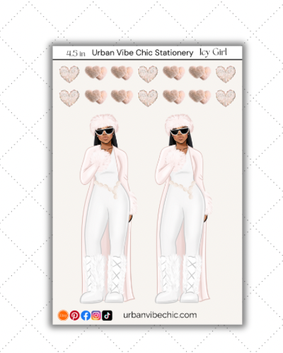 Introducing the NEW Winter Collection by Urban Vibe Chic — a luxurious set of winter-themed Black girl stickers featuring all-white outfits, fur details, snow boots, and high-fashion winter glam. Each sheet includes chic dolls, mini winter accessories, and decorative icons that bring your planner or journal to life.