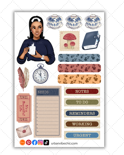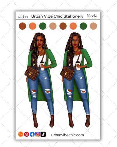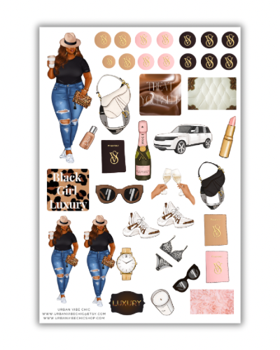 Bring your planner, journal, laptop, or favorite surfaces to life with this full sheet of Black girl stickers! Each sheet is thoughtfully designed to celebrate style, confidence, and creativity. Alongside gorgeous Black girl illustrations, you’ll find matching icons, accents, and themed designs that perfectly complement the vibe of the main characters on the sheet.